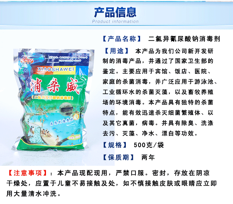 | 規(guī)格 | 1kg/袋, | 純度 | 有效氯含量 60% |