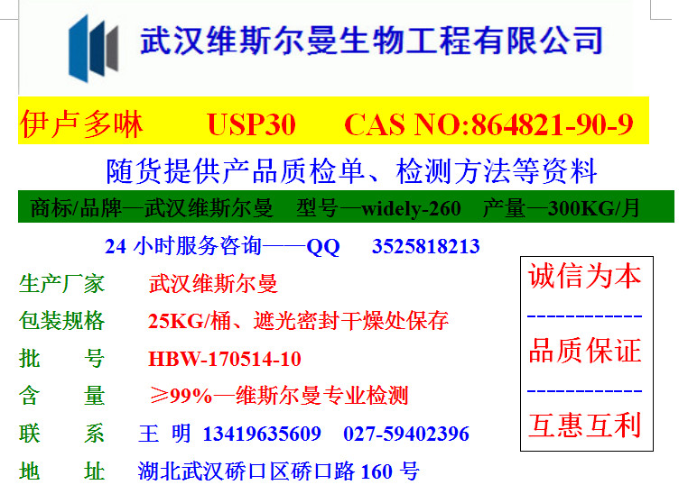 | HBW-170514-10 | 維斯?fàn)柭?/th> | 99% | 25KG/桶 | 需詢盤 | 3天 |