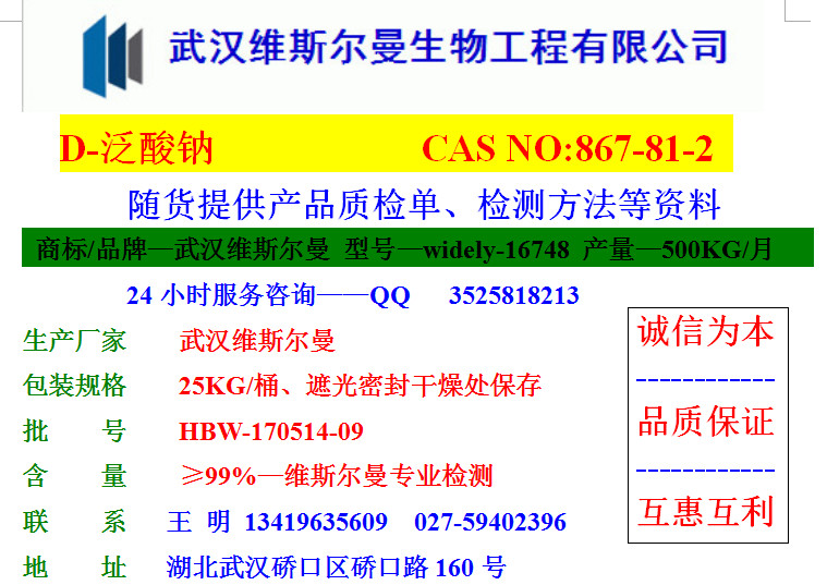 | 英文名 | Sodium D-Pantothenate | ||||