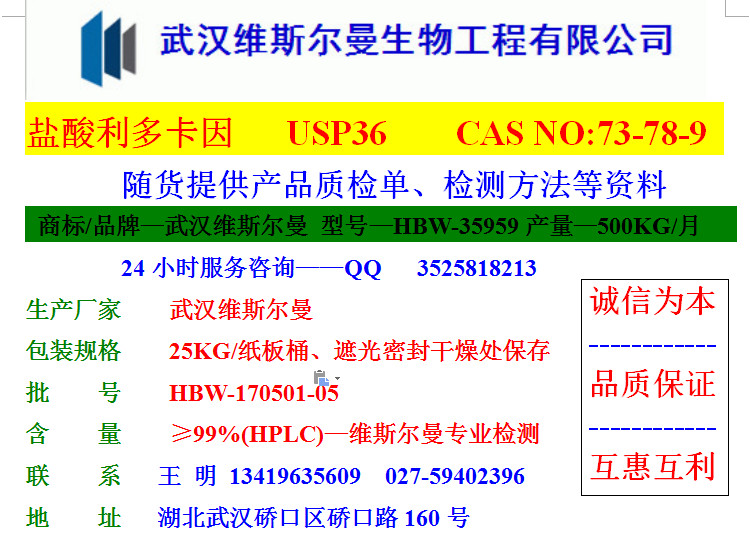 | HBW-35959 | 維斯?fàn)柭?/th> | 99% | 25KG/紙板桶 | 需詢盤 | 3天 |