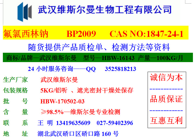 | HBW-16143 | 維斯爾曼 | 98.5% | 5KG/鋁聽 | 需詢盤 | 3天 |