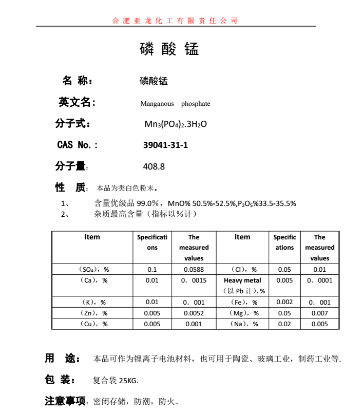 | 英文名 | dioxido(oxo)phosphanium,manganese(2+),trihydrate | ||||