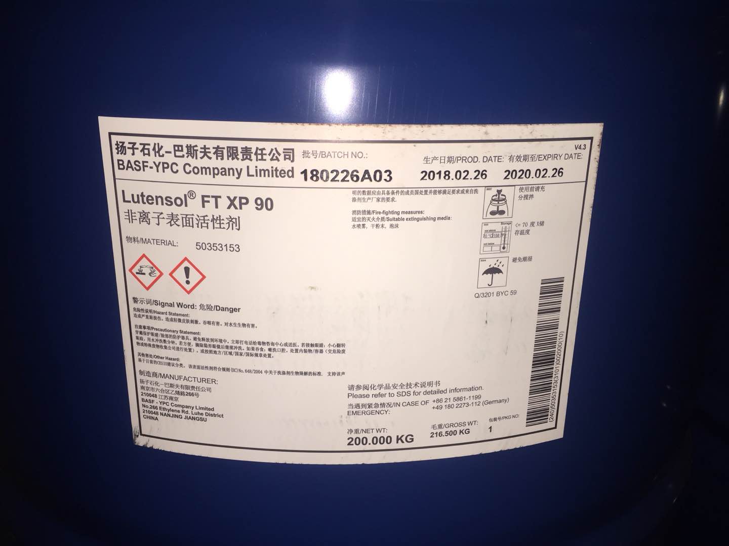 | XP系列 | 揚(yáng)子巴斯夫 | 99 | 190kg/桶、200kg/桶 | 需詢盤 | --- |