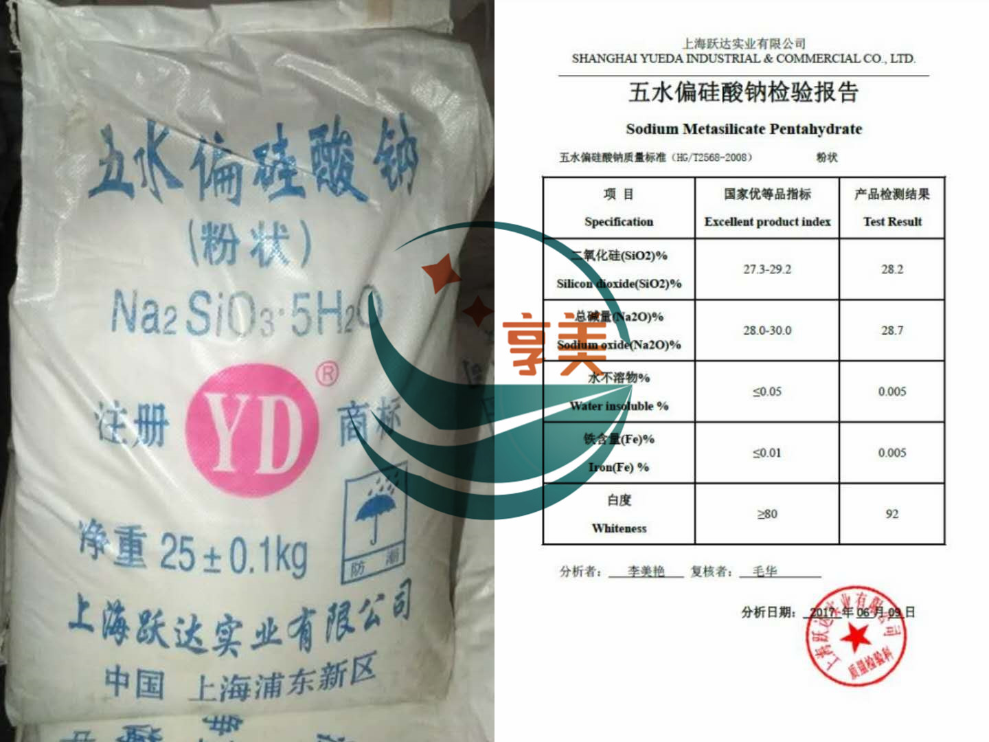 | 五水偏硅酸鈉 | 上海躍達/山東東岳 | 28.5 | 25kg/袋 | 需詢盤 | --- |