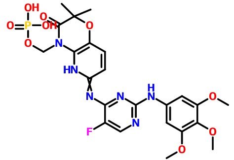 | 英文名 | [6-[[5-fluoro-2-(3,4,5-trimethoxyanilino)pyrimidin-4-yl]amino]-2,2-dimethyl-3-oxopyrido[3,2-b][1,4]oxazin-4-yl]methyl dihydrogen phosphate | ||||