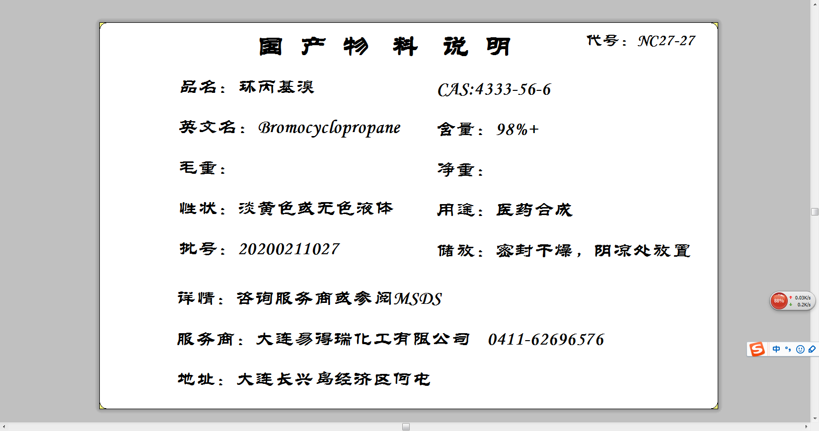 | 英文名 | Bromocyclopropane | ||||