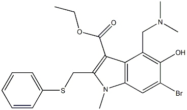 | 英文名 | ethyl 6-bromo-4-[(dimethylamino)methyl]-5-hydroxy-1-methyl-2-(phenylsulfanylmethyl)indole-3-carboxylate | ||||