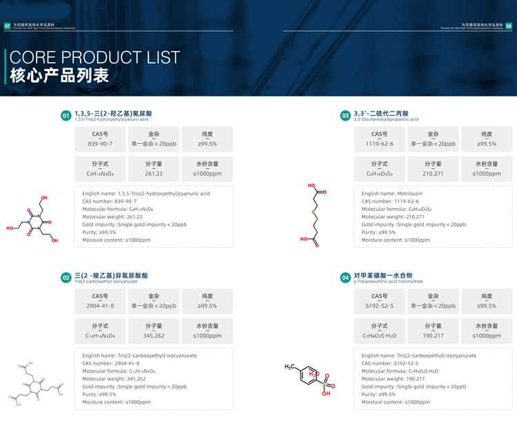 | 594-61-6 | 千予至純 | 電子級(jí)99% | 根據(jù)顧客要求 | 需詢盤 | --- |