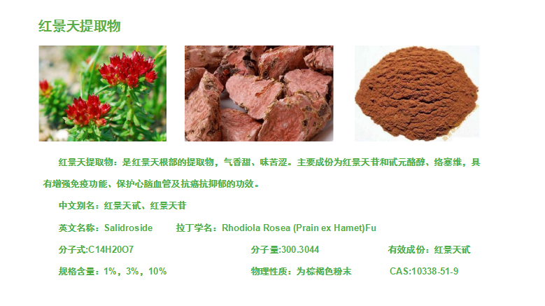 | 規(guī)格 | 25公斤/桶 | 純度 | 紅景天甙3% |