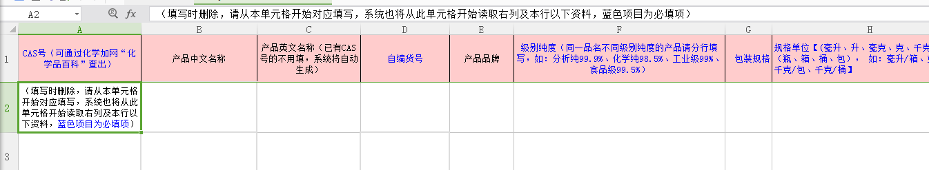 1、打開模板文件之后,如圖所示,圖中藍(lán)字項目為必填,請根據(jù)提示填寫。