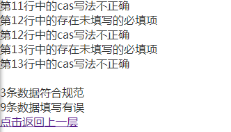 若出現(xiàn)下面這種頁面,顯示有數(shù)據(jù)填寫有誤,且符合規(guī)范的數(shù)據(jù)不與您填寫的CAS號數(shù)量一致,說明您有部分地方填寫失誤,請重新打開模板文件進(jìn)行檢查修改,修改好重新上傳即可。