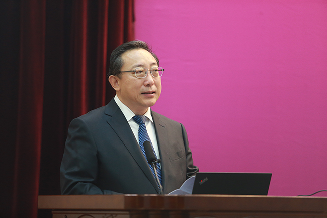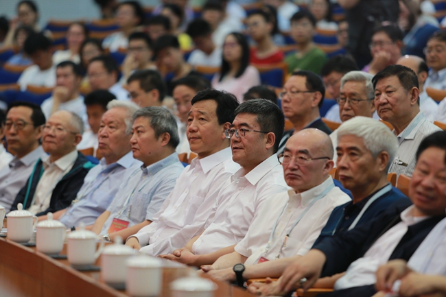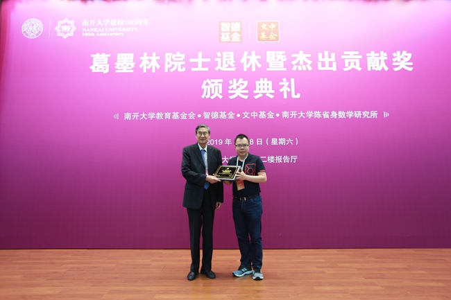 曹雪濤代表南開大學(xué)對葛墨林院士表示敬意和祝賀,向各位專家、來賓表示歡迎和感謝,對張文中校友、周海冰校友反哺母校的義舉表示感謝。曹雪濤說,葛墨林院士是著名的理論物理學(xué)家,在南開大學(xué)從事研究和教學(xué)工作30多年來,始終秉承著對學(xué)術(shù)研究與科學(xué)事業(yè)的無限熱忱,努力推動基礎(chǔ)理論學(xué)科的發(fā)展。他高度關(guān)注并積極對接國家戰(zhàn)略需求,在教學(xué)科研、人才培養(yǎng)及促進(jìn)學(xué)術(shù)交流等方面取得了卓越成就,為南開辦學(xué)實力的提升作出了突出貢獻(xiàn)。今天,我們頒發(fā)杰出貢獻(xiàn)獎,就是為了隆重表彰和嘉獎南開園中以葛先生為代表的這些愛國奉獻(xiàn)、求真敬業(yè)、為南開發(fā)展作出突出貢獻(xiàn)的專家學(xué)者。于獲獎?wù)叨?,這代表了榮譽(yù)與肯定,于廣大教師乃至全體南開人而言,則意味著表率和引領(lǐng),因此,葛墨林先生作為獎項的首屆獲獎?wù)弋?dāng)之無愧。特別感謝張文中先生和周海冰先生兩位優(yōu)秀校友,捐資設(shè)立“文中基金”“智德基金”,為南開助力學(xué)術(shù)、延攬人才、獎掖后學(xué)。正是在葛先生等一大批南開之師和張文中、周海冰等各界校友的共同努力下,才成就了南開百年之基業(yè)和今日之輝煌。今年是南開大學(xué)建校100周年,也是全體南開人繼往開來邁入新時代新百年的奮進(jìn)之年,更是全校上下凝心聚力建設(shè)“南開品格、中國特色、世界一流”大學(xué)的關(guān)鍵之年。唯有大師,方為大學(xué)。今天,我們大力推進(jìn)“雙一流”建設(shè)、積極實施“4211卓越南開行動計劃”,在這過程中,我們把人才工作放在了更加突出和優(yōu)先的位置,人才強(qiáng)校作為第一戰(zhàn)略、核心戰(zhàn)略體現(xiàn)在辦學(xué)治校的各方面。相信以文中、智德杰出貢獻(xiàn)獎為代表的獎勵項目的設(shè)立,將有效助力學(xué)校人才隊伍建設(shè),帶動南開綜合實力提升。我們堅信,新百年、新南開將呈現(xiàn)以新氣象、新作為,一個更加開放自信的南開正闊步走來!懇請各位院士專家對南開人才隊伍建設(shè)和學(xué)校事業(yè)發(fā)展給予更有力的指導(dǎo)與支持,也歡迎各位為南開舉薦更多優(yōu)秀人才。誠邀各位再度蒞臨南開參加百年校慶慶典,與我們共話新百年、新南開、新發(fā)展。