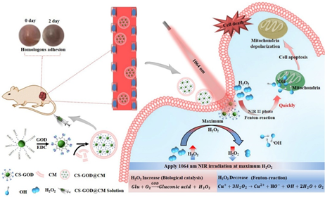 圖1 過氧化氫引導(dǎo)近紅外二區(qū)光照增強(qiáng)CS-GOD@CM仿生納米顆?;瘜W(xué)動(dòng)力治療腫瘤。