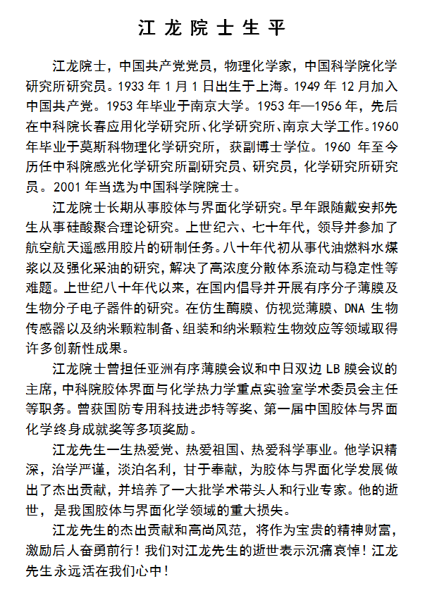 沉痛悼念!著名物理化學(xué)家江龍?jiān)菏渴攀?,享年九十歲