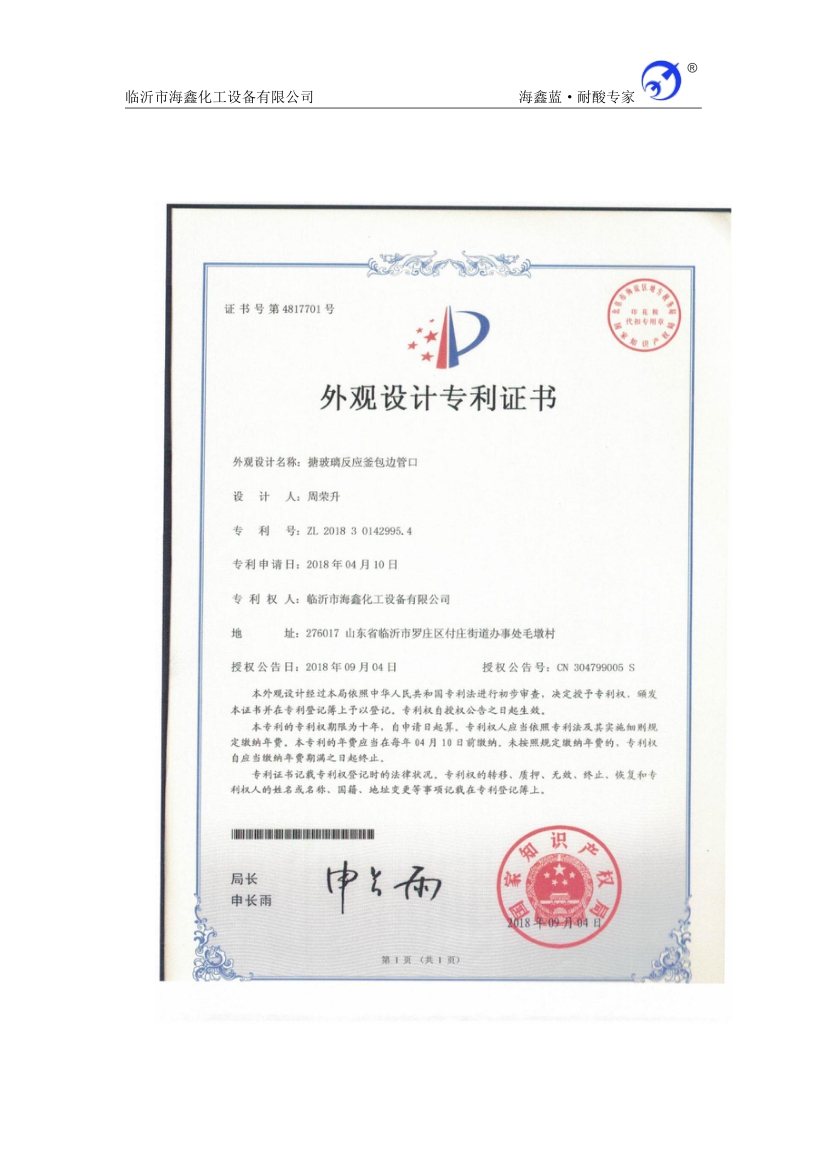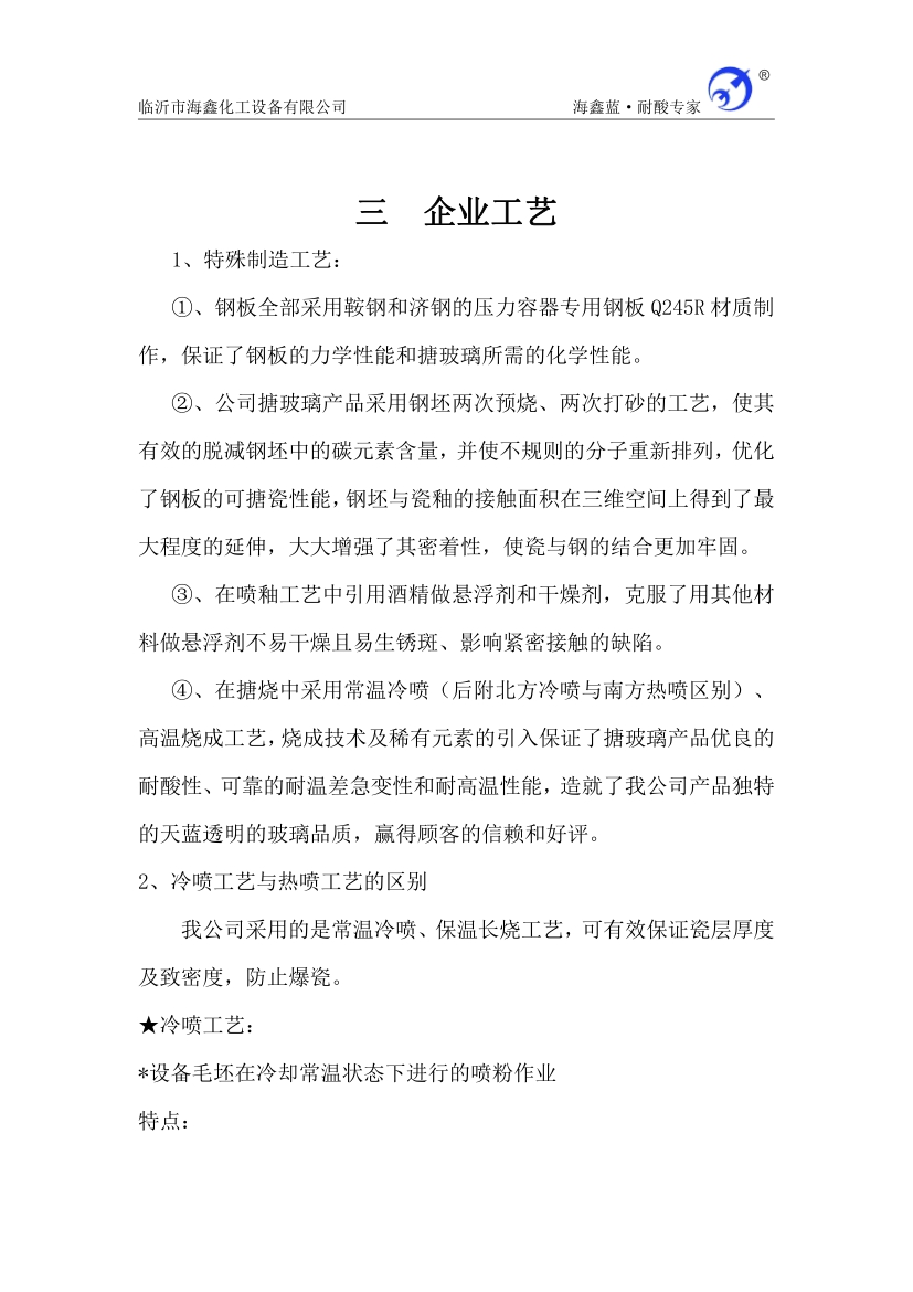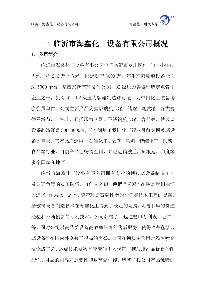 臨沂市海鑫化工設(shè)備有限公司擁有專(zhuān)業(yè)的搪玻璃設(shè)備制造工藝及認(rèn)真負(fù)責(zé)的員工隊(duì)伍,自創(chuàng)立之初,便把“卓越的品質(zhì)是我們永恒的追求”作為立廠之本。隨著對(duì)搪玻璃性能的研究和技術(shù)工藝的提高,搪玻璃設(shè)備制造技術(shù)在海鑫化工得到了長(zhǎng)足的發(fā)展。憑借多年的制造經(jīng)驗(yàn)和不斷創(chuàng)新的專(zhuān)利技術(shù),公司獲得了“包邊管口專(zhuān)利設(shè)計(jì)證書(shū)”等。同時(shí)公司以高品質(zhì)設(shè)備高效率熱情的售后服務(wù),使得“海鑫搪玻璃設(shè)備”在國(guó)內(nèi)外享有了很高的聲譽(yù)。公司在搪燒中采用常溫冷噴高溫?zé)晒に嚕瑹杉夹g(shù)及稀有元素的引入保證了搪玻璃產(chǎn)品優(yōu)良的耐酸性、可靠的耐溫差急變性和耐高溫性能,造就了我公司產(chǎn)品獨(dú)特的天藍(lán)透明的玻璃品質(zhì),贏得國(guó)內(nèi)外用戶的信任和好評(píng)!