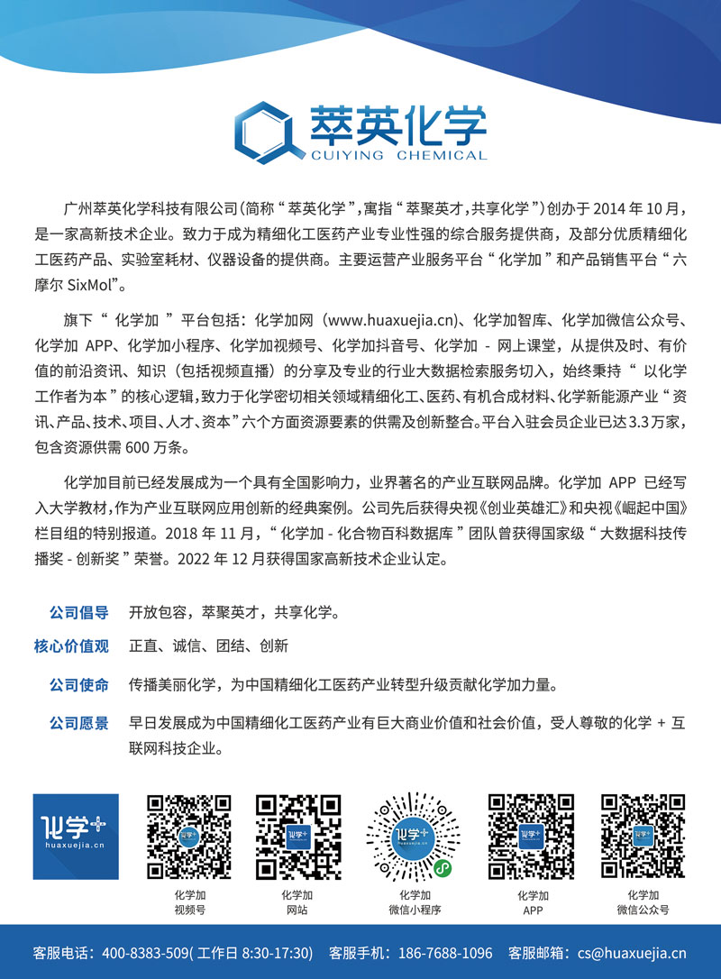 聲明:化學(xué)加刊發(fā)或者轉(zhuǎn)載此文只是出于傳遞、分享更多信息之目的,并不意味認(rèn)同其觀點(diǎn)或證實(shí)其描述。若有來(lái)源標(biāo)注錯(cuò)誤或侵犯了您的合法權(quán)益,請(qǐng)作者持權(quán)屬證明與本網(wǎng)聯(lián)系,我們將及時(shí)更正、刪除,謝謝。 電話:18676881059,郵箱:gongjian@huaxuejia.cn