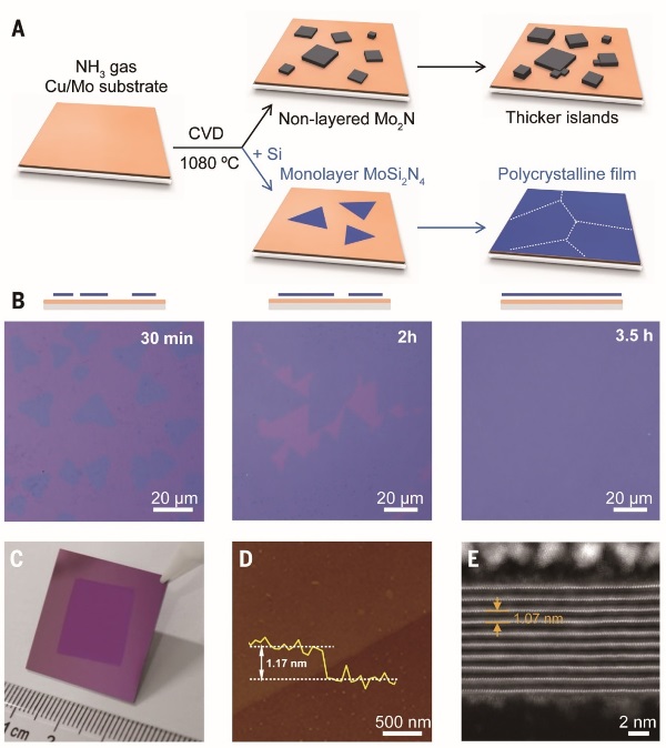 圖1. CVD生長(zhǎng)二維層狀MoSi2N4