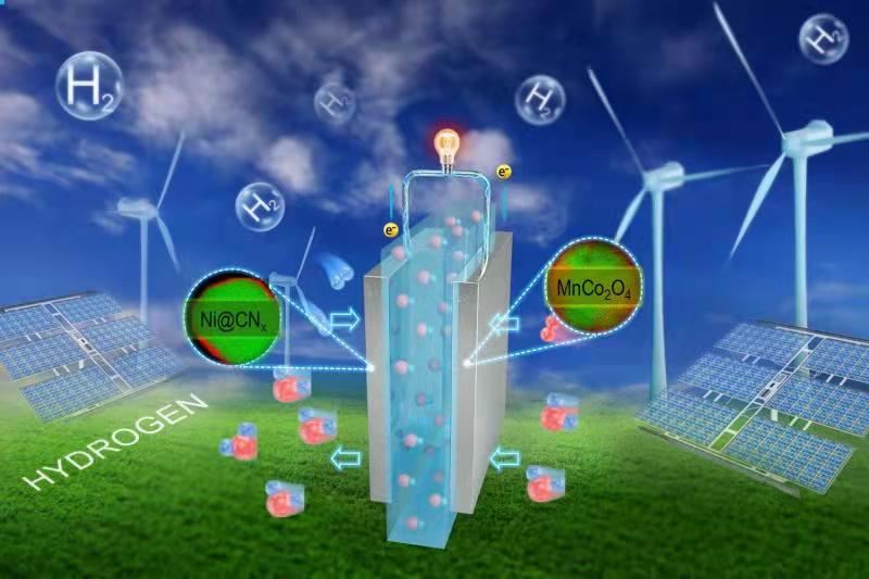 HOR的催化劑一直以來(lái)都依賴(lài)貴金屬鉑。堿性體系中金屬鎳具有一定的活性,但表面極易氧化鈍化。肖麗/莊林團(tuán)隊(duì)的碩士研究生高云飛發(fā)現(xiàn)如果在鎳納米催化劑表面包覆薄層氮雜碳,可顯著提高抗氧化性,且促進(jìn)其HOR催化活性,尤其當(dāng)使用含CO的氫氣時(shí),這種新型鎳電極表現(xiàn)出高于鉑電極的活性和穩(wěn)定性。隨后,早年畢業(yè)于莊林課題組到美國(guó)康奈爾大學(xué)攻讀博士學(xué)位的楊堯采用高分辨電子顯微分析和同步輻射X射線光譜對(duì)這種鎳表面的特性和催化機(jī)理進(jìn)行了深入剖析。高云飛以該鎳陽(yáng)極和錳鈷陰極實(shí)現(xiàn)了峰值功率密度超過(guò)200 mW/cm2的APEFC,這是目前使用全非貴金屬催化劑低溫燃料電池的最高性能報(bào)道。