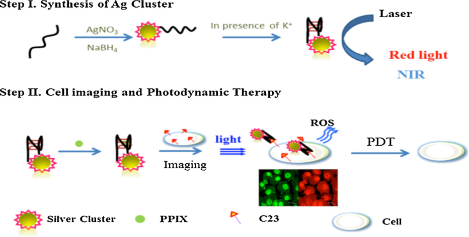 愛軍教授團隊一直致力于特殊結(jié)構(gòu)DNA設(shè)計分析及應(yīng)用方面的研究。近期,通過指數(shù)富集的配體系統(tǒng)進化技術(shù)(SELEX)篩選出了AS1411,制備了以水溶性AS1411 G-四鏈體為模板的近紅外熒光銀納米團簇能負載光敏劑(原卟啉),實現(xiàn)了對癌細胞的熒光探針原卟啉細胞成像、光治療和近紅外光熱治療的協(xié)同作用,對癌癥診斷和治療方面有潛在的應(yīng)用價值。其研究成果“Progress in cancer drug delivery based on AS1411 oriented nanomaterials”在納米醫(yī)藥領(lǐng)域Top期刊《Journal of Nanobiotechnology》上發(fā)表。全文鏈接:https://doi.org/10.1186/s12951-022-01240-z