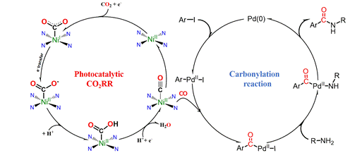 圖2.光催化CO2還原與鈀催化羰基化反應(yīng)的串聯(lián)反應(yīng)歷程
