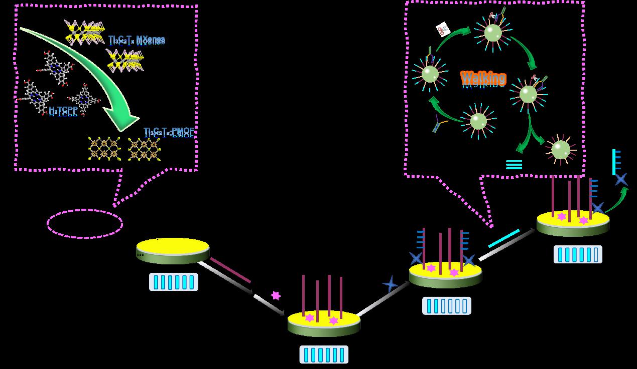 圖1基于Ti3C2Tx-PMOF構(gòu)建的電致化學(xué)發(fā)光生物傳感器示意圖
