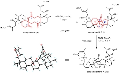 圖1 Scoparicacids A–C(1–3)的發(fā)現(xiàn)及其免疫抑制活性