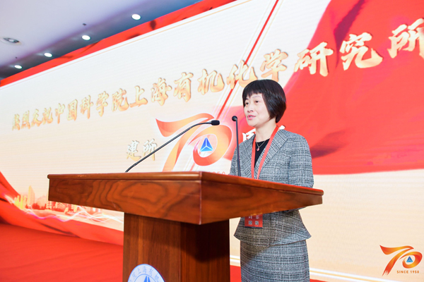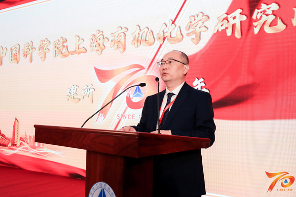 中科院上海分院分黨組書記、副院長(zhǎng)李正華宣讀了中科院白春禮院長(zhǎng)關(guān)于上海有機(jī)所建所70周年學(xué)術(shù)報(bào)告會(huì)的致辭。