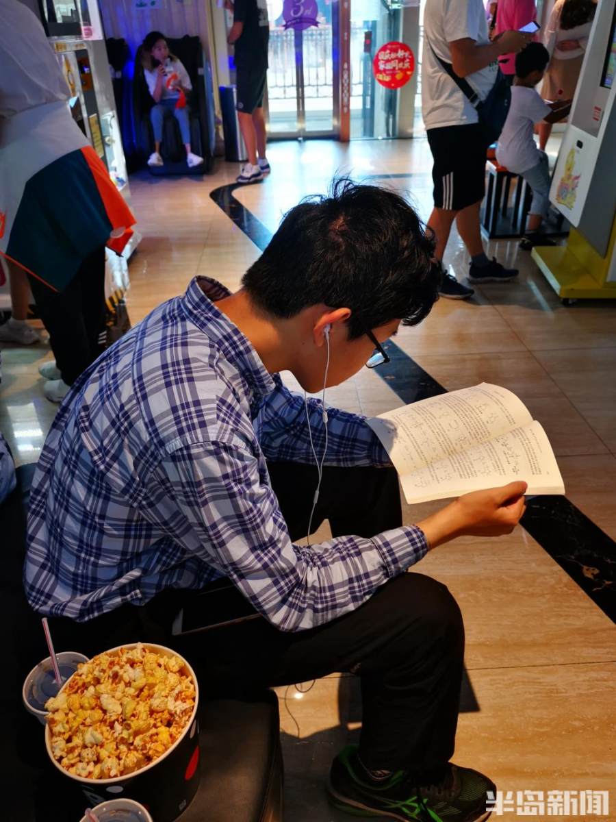 等待電影開場的間隙,依然在看書。