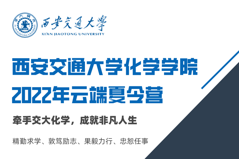 為促進(jìn)全國各高校優(yōu)秀大學(xué)生之間的學(xué)術(shù)交流,增進(jìn)對西安交通大學(xué)和化學(xué)學(xué)院的深入了解,西安交通大學(xué)化學(xué)學(xué)院將于2022年7月22日-7月23日舉辦云端“西安交通大學(xué)化學(xué)學(xué)院全國優(yōu)秀大學(xué)生夏令營”,以開闊學(xué)...