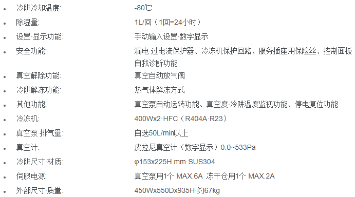 1、 除濕量1L./回的少量樣品用,根據(jù)使用目的可選配多歧管或凍干倉組合構(gòu)成冷凍干燥系統(tǒng);