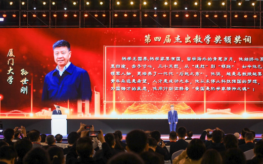 4月9日,第八屆中國國際“互聯(lián)網(wǎng)+”大學(xué)生創(chuàng)新創(chuàng)業(yè)大賽冠軍爭奪賽及第四屆教學(xué)大師獎、杰出教學(xué)獎、創(chuàng)新創(chuàng)業(yè)英才獎頒獎典禮在重慶大學(xué)舉行。教育部部長懷進(jìn)鵬向獲得第四屆教學(xué)大師獎、杰出教學(xué)獎、創(chuàng)新創(chuàng)業(yè)英才獎...