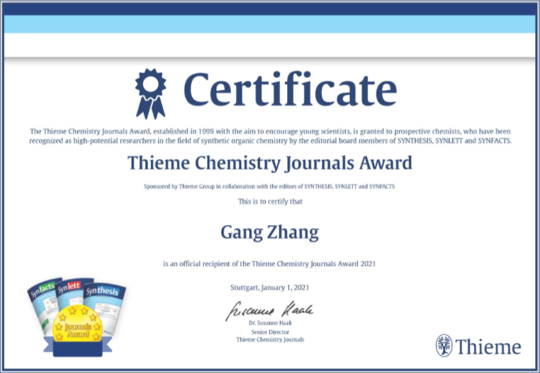 南京林業(yè)大學(xué)化學(xué)工程學(xué)院張綱教授喜獲國(guó)際學(xué)術(shù)獎(jiǎng)-2021年度"Thieme Chemistry Journal Award"。該獎(jiǎng)項(xiàng)設(shè)立于1999年,由Thieme數(shù)據(jù)庫(kù)三大著名有...