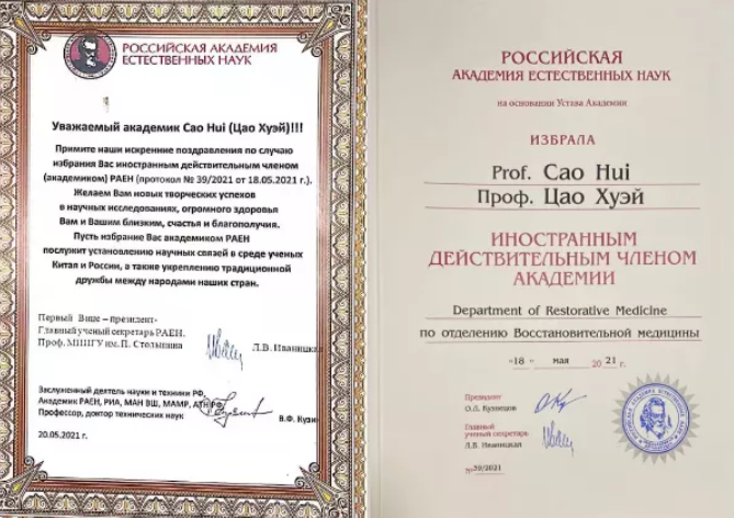 2021年7月29日,俄羅斯自然科學院(RANS)向中國籍科學家曹暉博士發(fā)來賀信,祝賀他當選為俄羅斯自然科學院外籍院士,并簽發(fā)了院士當選證書與院士工作證書。...