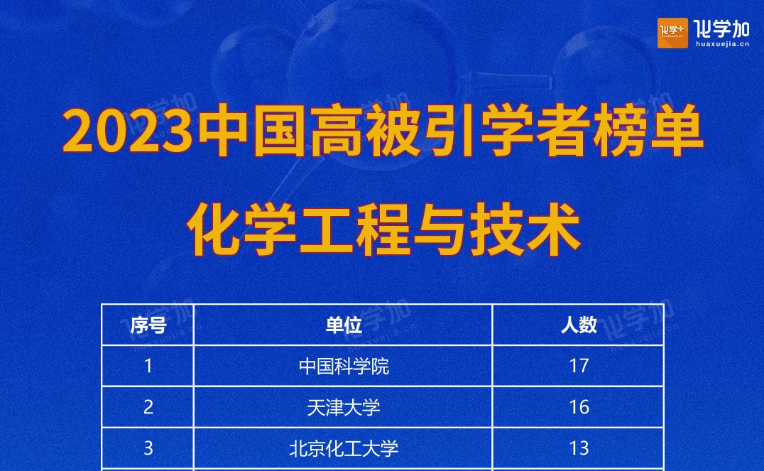 愛思唯爾2023“中國高被引學者”榜單,化學工程與技術(shù)學科184人上榜,中國科學院、天津大學、北京化工大學、華東理工大學、清華大學、大連理工大學等機構(gòu)上榜人數(shù)較多。...
