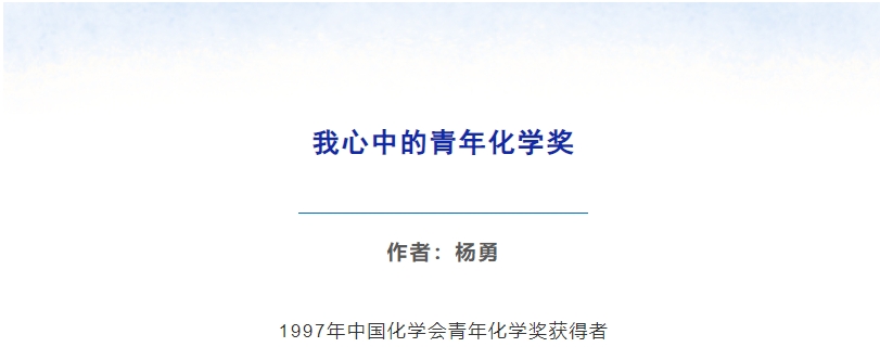 2023年,正值中國(guó)化學(xué)會(huì)青年化學(xué)獎(jiǎng)設(shè)立40周年,這是中國(guó)化學(xué)會(huì)設(shè)立最早的學(xué)術(shù)獎(jiǎng)勵(lì),40年來(lái),已產(chǎn)生362位獲獎(jiǎng)?wù)摺閼c祝中國(guó)化學(xué)會(huì)青年化學(xué)獎(jiǎng)設(shè)立40周年,特別企劃了“化學(xué)青春在路上”專(zhuān)題分享,將陸續(xù)...