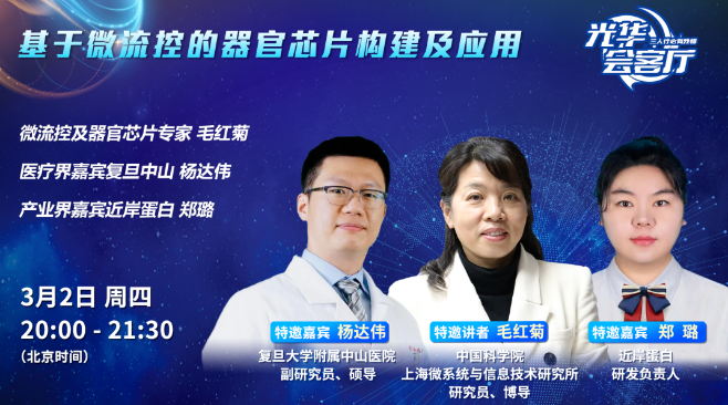 3月2日(周四)晚8點(diǎn),非常有幸邀請(qǐng)到微流控及器官芯片領(lǐng)域?qū)<?毛紅菊教授,做客【光華會(huì)客廳】欄目,分享 “基于微流控的器官芯片構(gòu)建及應(yīng)用” 的精彩故事。...