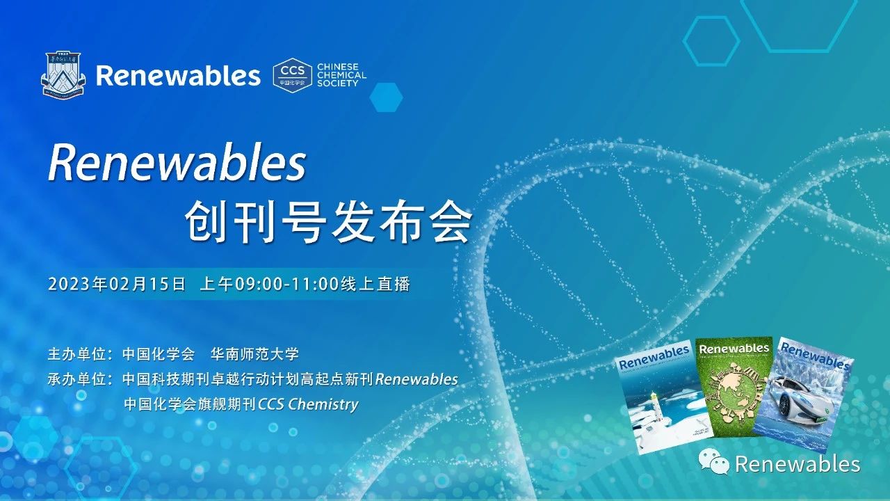 為慶祝Renewables創(chuàng)刊,中國化學會和華南師范大學特于02月15日(星期三)上午在線上舉行隆重的發(fā)布儀式,歡迎大家通過化學加視頻號觀看!...