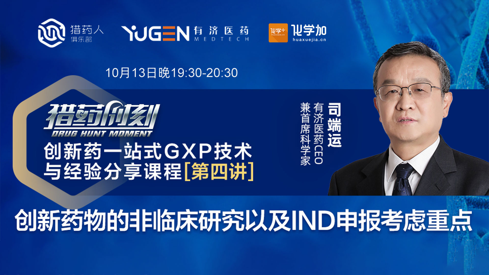 作為《創(chuàng)新藥一站式GXP技術(shù)與經(jīng)驗(yàn)》分享課程的第四講,獵藥時(shí)刻欄目特邀天津有濟(jì)醫(yī)藥科技發(fā)展有限公司CEO兼首席科學(xué)家司端運(yùn)博士于10月13日晚19:30帶來《創(chuàng)新藥物的非臨床研究以及IND申報(bào)考慮重點(diǎn)...