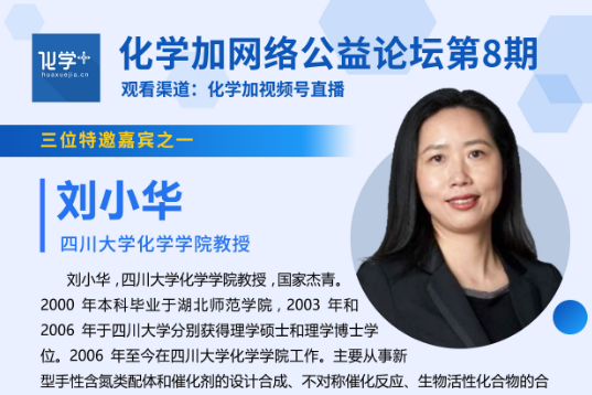 化學(xué)加網(wǎng)絡(luò)公益論壇第8期將于2022年6月18日(星期六)14:00-16:30舉行,我們很高興邀請(qǐng)到了南方科技大學(xué)化學(xué)系徐明華教授、四川大學(xué)化學(xué)學(xué)院劉小華教授、復(fù)旦大學(xué)化學(xué)系張俊良教授等三位嘉賓做報(bào)...
