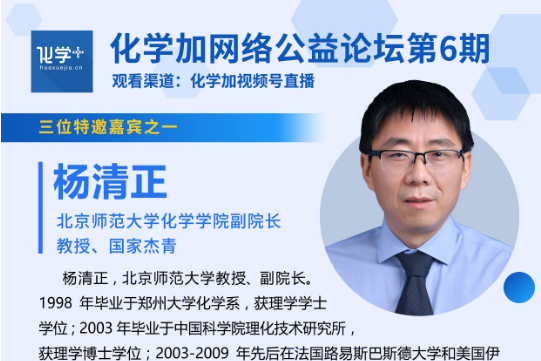 化學(xué)加網(wǎng)絡(luò)公益論壇第6期將于2022年6月4日(星期六)14:00-16:30舉行,我們很高興邀請到了北京師范大學(xué)化學(xué)學(xué)院副院長楊清正教授、大連理工精細(xì)化工國家重點(diǎn)實(shí)驗(yàn)室樊江莉教授、華東理工化學(xué)與分子...