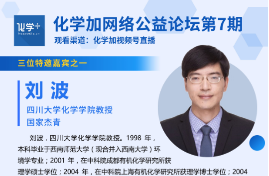 化學(xué)加網(wǎng)絡(luò)公益論壇第7期將于2022年6月11日(星期六)14:00-16:30舉行,我們很高興邀請到了北京大學(xué)藥學(xué)院賈彥興教授、四川大學(xué)化學(xué)學(xué)院劉波教授、浙江大學(xué)化學(xué)系丁寒鋒教授等三位嘉賓做報(bào)告分享...