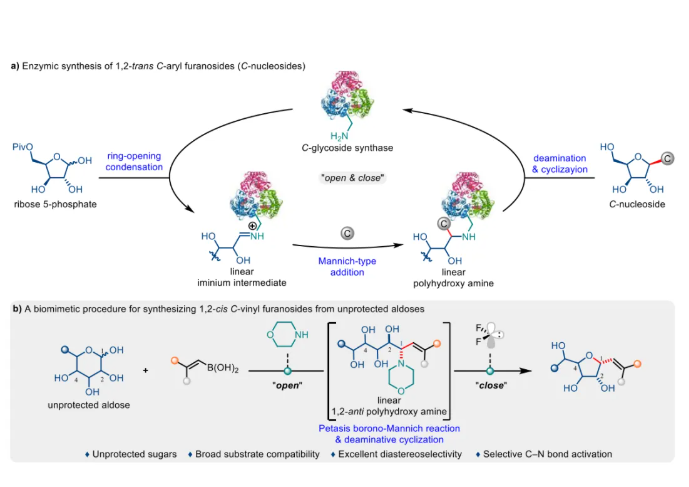 近日,南開(kāi)大學(xué)何剛團(tuán)隊(duì)開(kāi)發(fā)了一種仿生“開(kāi)-關(guān)”策略,實(shí)現(xiàn)了從天然無(wú)保護(hù)醛糖直接合成1,2-順式烯基呋喃碳-糖苷,相關(guān)工作近期發(fā)表在Journal of the American Chemical So...