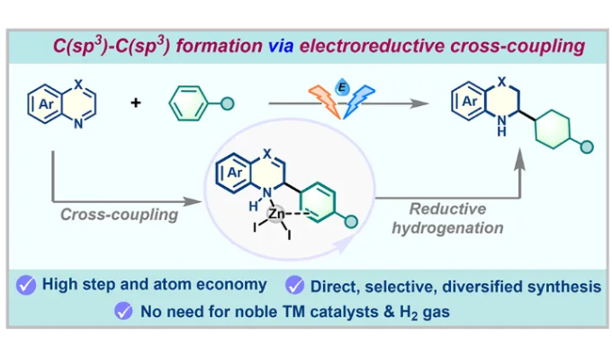 近日,華南理工大學(xué)張珉課題組通過(guò)開(kāi)發(fā)無(wú)過(guò)渡金屬參與的電化學(xué)合成策略,在室溫條件下利用無(wú)隔膜電解池,以鋅板為陽(yáng)極、鋁板為陰極,由 N-雜芳烴與芳基羧酸衍生物(酯、腈、酰胺等)經(jīng)電還原交叉偶聯(lián),實(shí)現(xiàn)了α-...