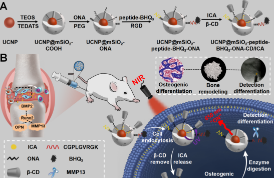 中山大學(xué)腫瘤防治中心楊安力/華南師范大學(xué)黎錦明制備了一種UCNP多功能納米顆粒,用于光控誘導(dǎo)MSC成骨分化治療骨質(zhì)疏松,同時(shí)通過熒光檢測(cè)成骨分化評(píng)價(jià)治療效果。以上成果發(fā)表在ACS Nano(2022,...