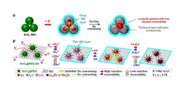 探索電極材料電化學(xué)反應(yīng)的活性提升策略及儲(chǔ)能過(guò)程機(jī)理一直是電池研究領(lǐng)域的關(guān)鍵課題。二氧化錫(SnO2)是一種高容量鋰/鈉離子電池負(fù)極材料,理論儲(chǔ)鋰容量高達(dá)1494 mAh/g,是商用石墨負(fù)極的約4倍,且...