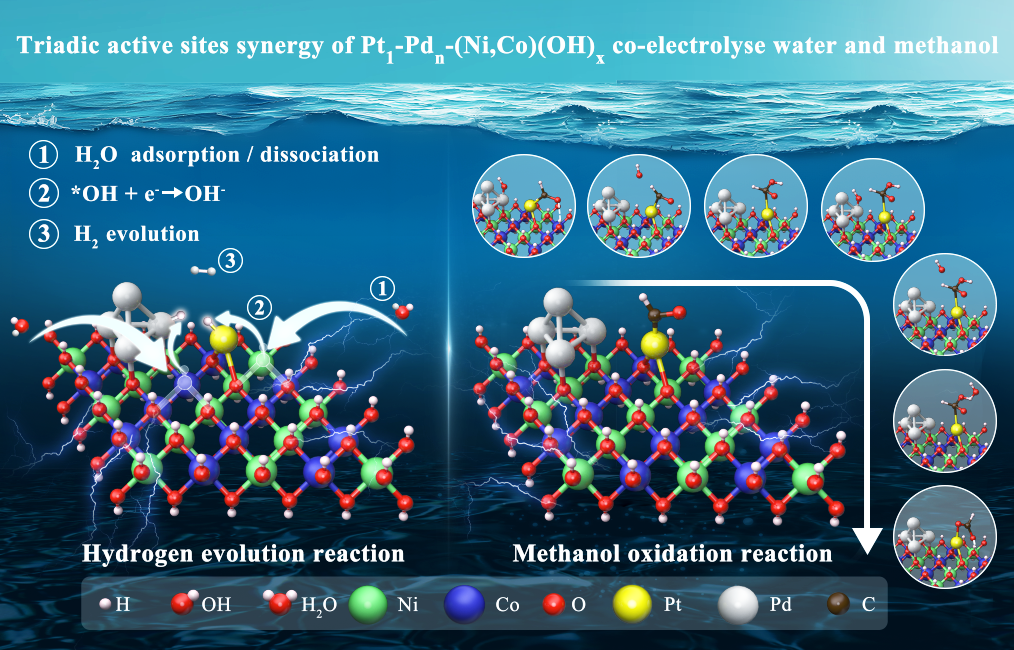 本研究針對(duì)在甲醇氧化反應(yīng)(MOR)和氫氣析出反應(yīng)(HER)中的共性科學(xué)問(wèn)題,通過(guò)催化劑設(shè)計(jì),以炭黑為催化劑載體,提出了一種由Pt單原子(Pt1)、Pd納米團(tuán)簇(Pdn)和富含OH空位的鎳鈷氫氧化物(N...