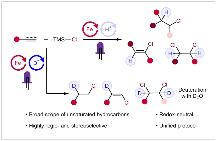 最近,美國(guó)萊斯大學(xué)(Rice University)Julian G. West課題組報(bào)道了光催化不飽和烴的反馬氏氫-氯化和氘-氯化反應(yīng),以良好的區(qū)域選擇性和立體選擇性實(shí)現(xiàn)了不同烷基氯化物和烯基氯化物...
