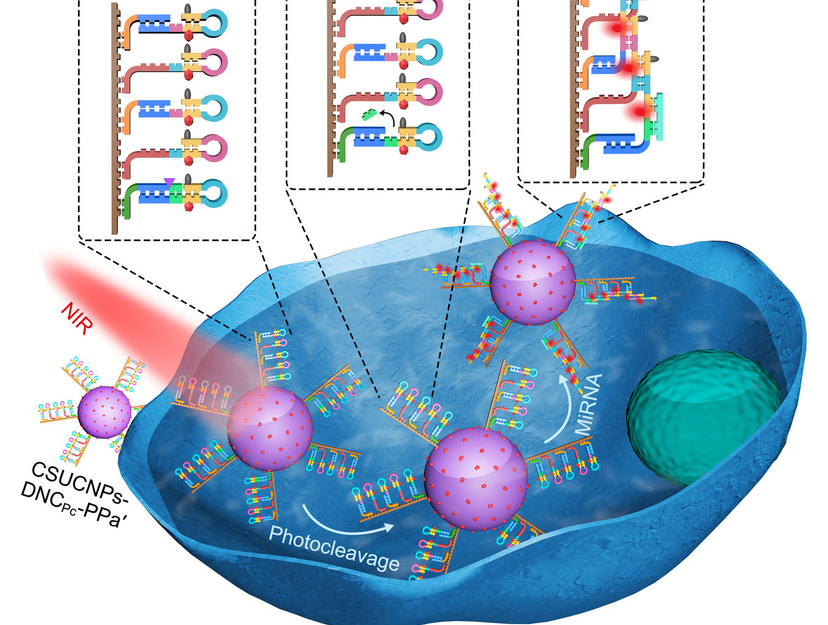 近期,南京大學(xué)鞠熀先教授研究團(tuán)隊(duì)針對體循環(huán)中RNA的干擾問題,利用其設(shè)計的光響應(yīng)性DNA納米梳,研制了一種近紅外光調(diào)控的miRNA放大器,并結(jié)合UCNPs的近紅外光激發(fā)、多短波長發(fā)射的性質(zhì)實(shí)現(xiàn)了早期癌...