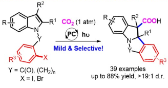 四川大學(xué)余達(dá)剛課題組實現(xiàn)可見光催化CO2參與的吲哚還原去芳構(gòu)化-羧基化反應(yīng)