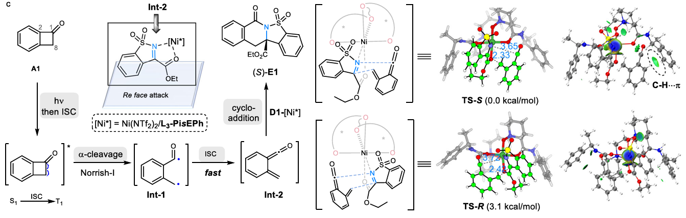 該工作實(shí)現(xiàn)了首例光介導(dǎo)苯并環(huán)丁烯酮異構(gòu)化/不對(duì)稱(chēng)氮雜-[4+2]環(huán)加成反應(yīng)?;谧杂苫蹲綄?shí)驗(yàn),控制實(shí)驗(yàn)以及DFT計(jì)算,證明了鄰亞甲基聯(lián)烯酮是該反應(yīng)的關(guān)鍵活性中間體,同時(shí)排除了自由基加成機(jī)理。...